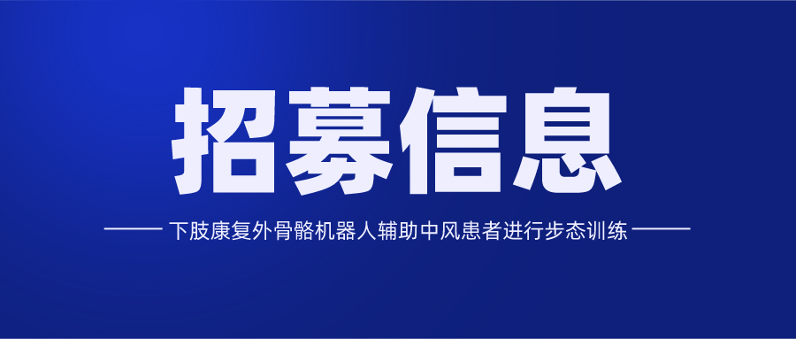 南方醫(yī)科大學(xué)珠江醫(yī)院、廣東省工傷康復(fù)醫(yī)院、深圳市第二人民醫(yī)院、江蘇省人民醫(yī)院招募中風(fēng)患者,符合條件者可享受免費的機器人訓(xùn)練或者常規(guī)步行訓(xùn)練;獲得免費及專業(yè)的隨訪檢查和評估以及交通補貼1000元。