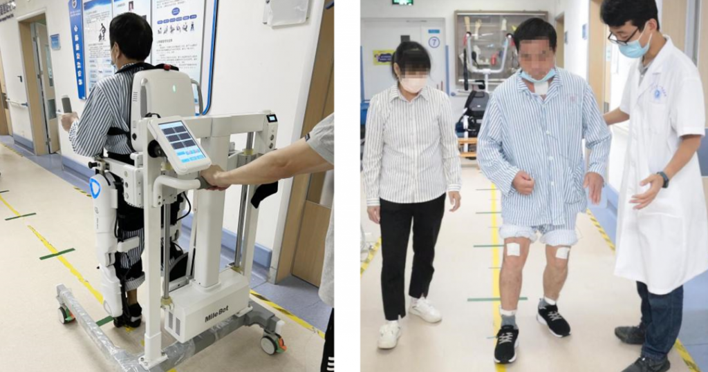 圖1 中風(fēng)患者臨床康復(fù)訓(xùn)練(a)患者穿戴外骨骼進(jìn)行步態(tài)康復(fù)訓(xùn)練;(b)采集患者訓(xùn)練后康復(fù)評(píng)估指標(biāo)
